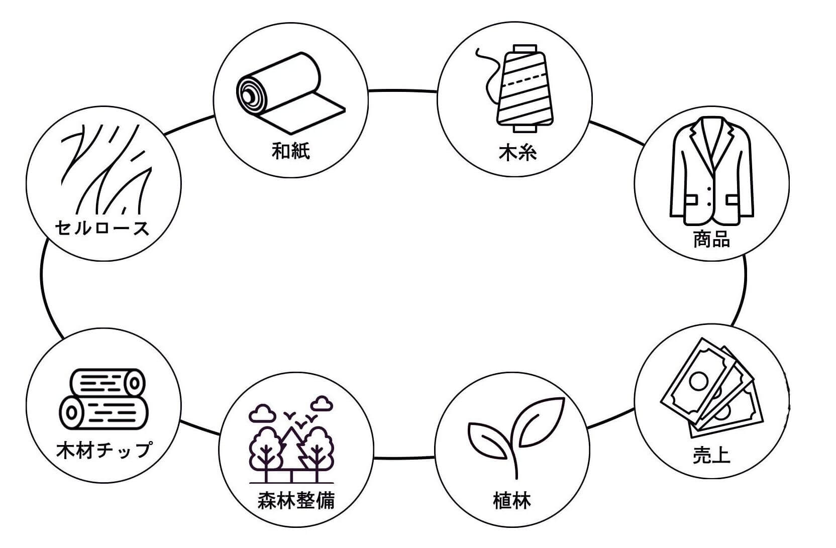 木1本の価値を上げ、利益の出る産業に変え、森林課題の解決と新たな産業・雇用創出を両立し、日本発の新たな繊維市場を世界に創出します。